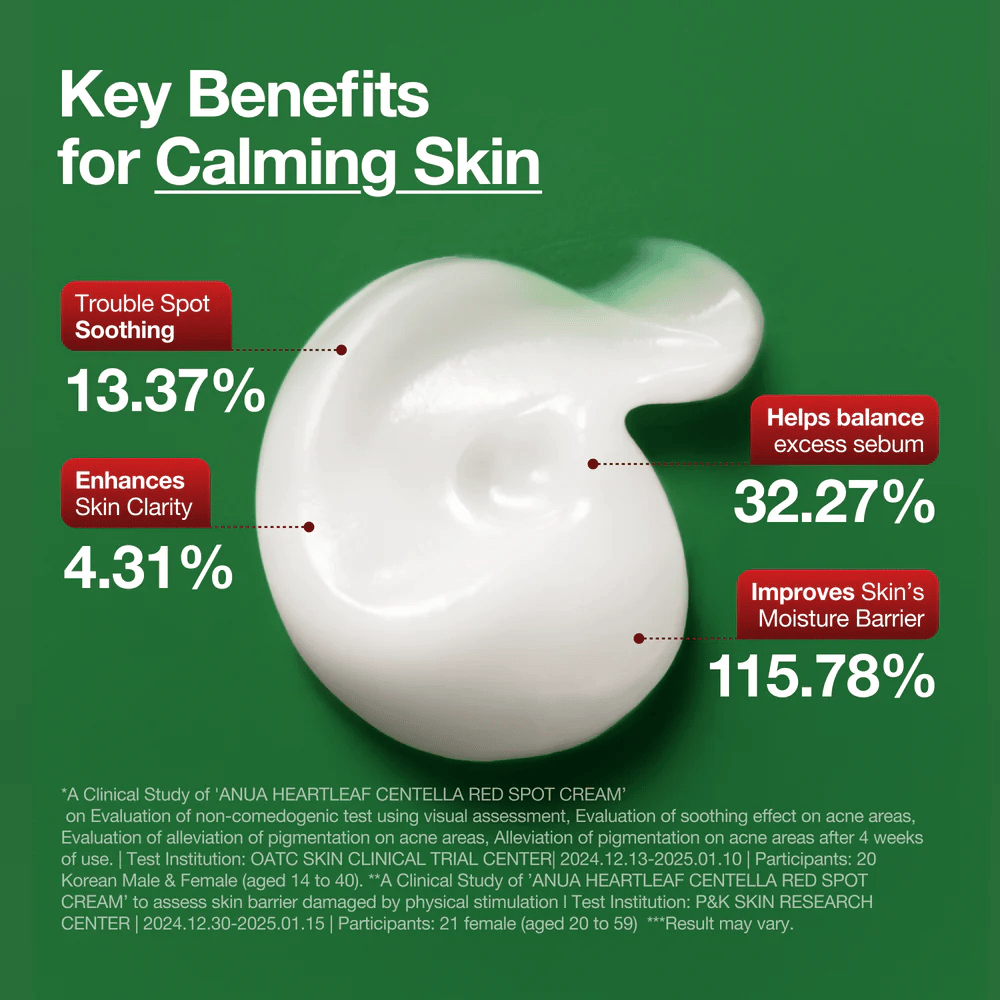 Anua Heartleaf Centella Red Spot Cream v beli tubi, točkovna krema s centello za pomiritev kože in krepitev vlažilne pregrade.