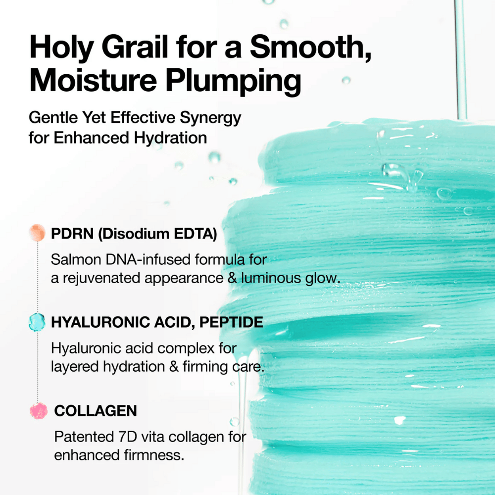 Water, Butylene Glycol, Glycereth-26, Niacinamide, Glycerin, 1,2-Hexanediol, Diethoxyethyl Succinate, Hydroxyethyl Urea, Hydroxyacetophenone, Glycereth-25 PCA Isostearate, Glycosyl Trehalose, Hydrogenated Starch Hydrolysate, Melia Azadirachta Leaf Extract, Ethylhexylglycerin, Xanthan Gum, Propanediol, Adenosine, Melia Azadirachta Flower Extract, Coccinia Indica Fruit Extract, Disodium EDTA, Sodium DNA (100ppm), Hydrolyzed Collagen, Aloe Barbadensis Flower Extract, Solanum Melongena (Eggplant) Fruit Extract, Coptis Japonica Root Extract, Ocimum Sanctum Leaf Extract, Zea Mays (Corn) Kernel Extract, Corallina Officinalis Extract, Curcuma Longa (Turmeric) Root Extract, Sodium Hyaluronate (5.002ppm), Hyaluronic Acid (5ppm), Hydrolyzed Hyaluronic Acid (5ppm), Terminalia Ferdinandiana Fruit Extract, Fructan, Glucose, Lecithin, Acetyl Glutamine, Collagen Extract, Bacillus/Soybean Ferment Extract, Caprylyl Glycol, Folic Acid, Hexapeptide-11, Oligopeptide-1, Oligopeptide-2, Oligopeptide-3.